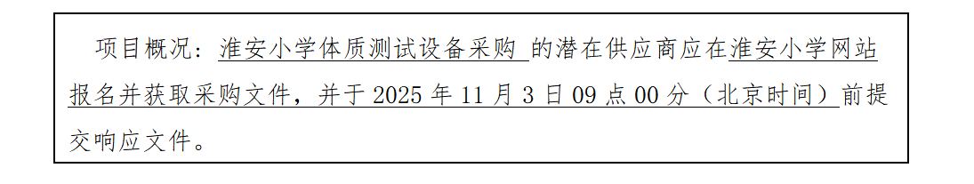 (六)采购需求: 淮安小学体质测试设备采购,详见磋商文件第五章项目采购需求。